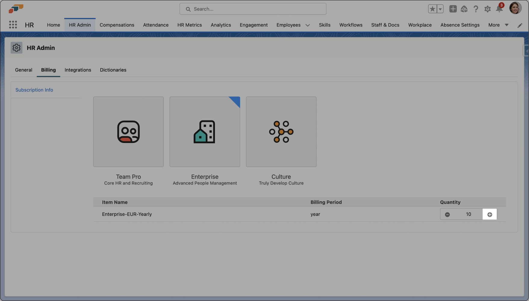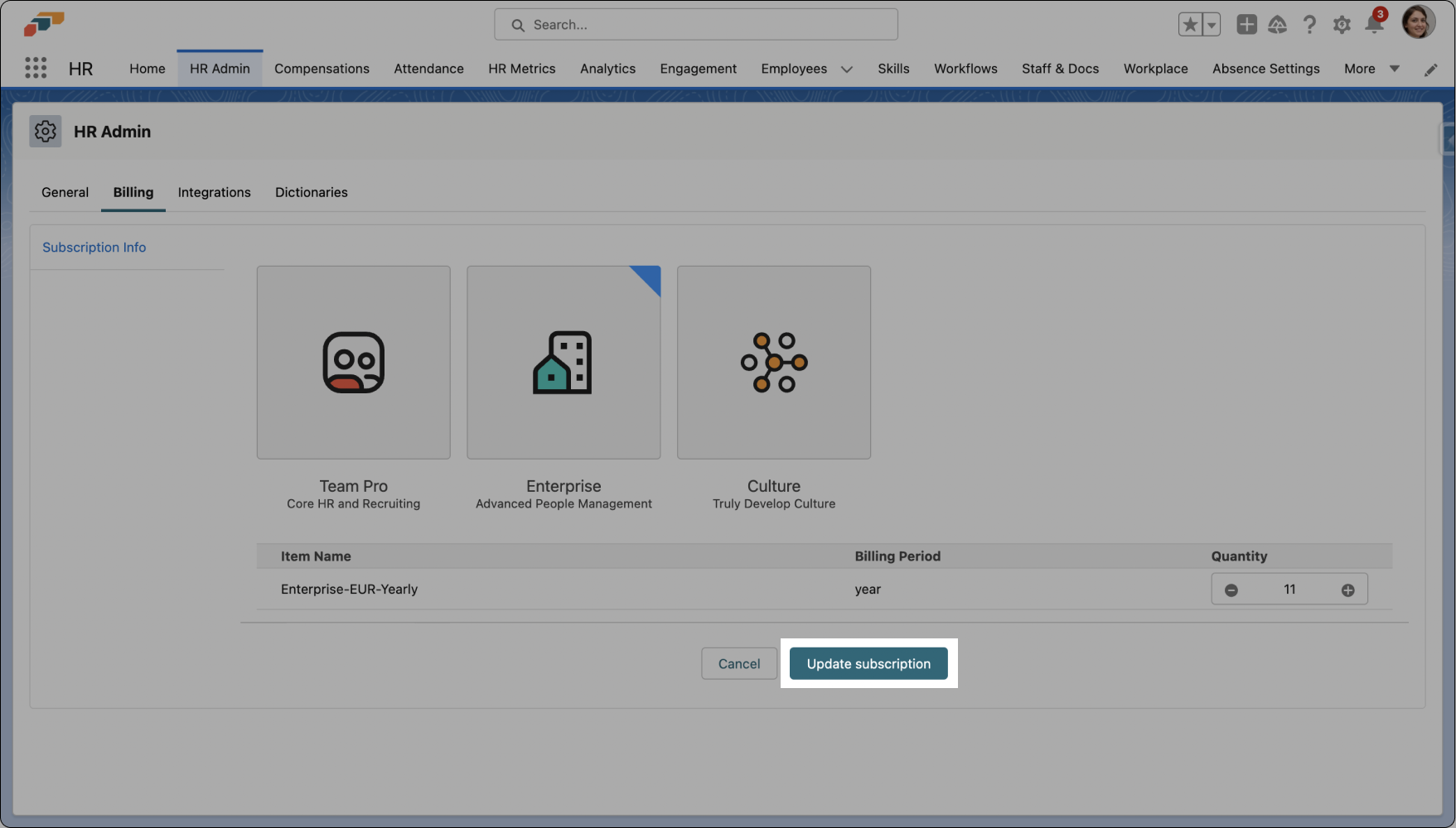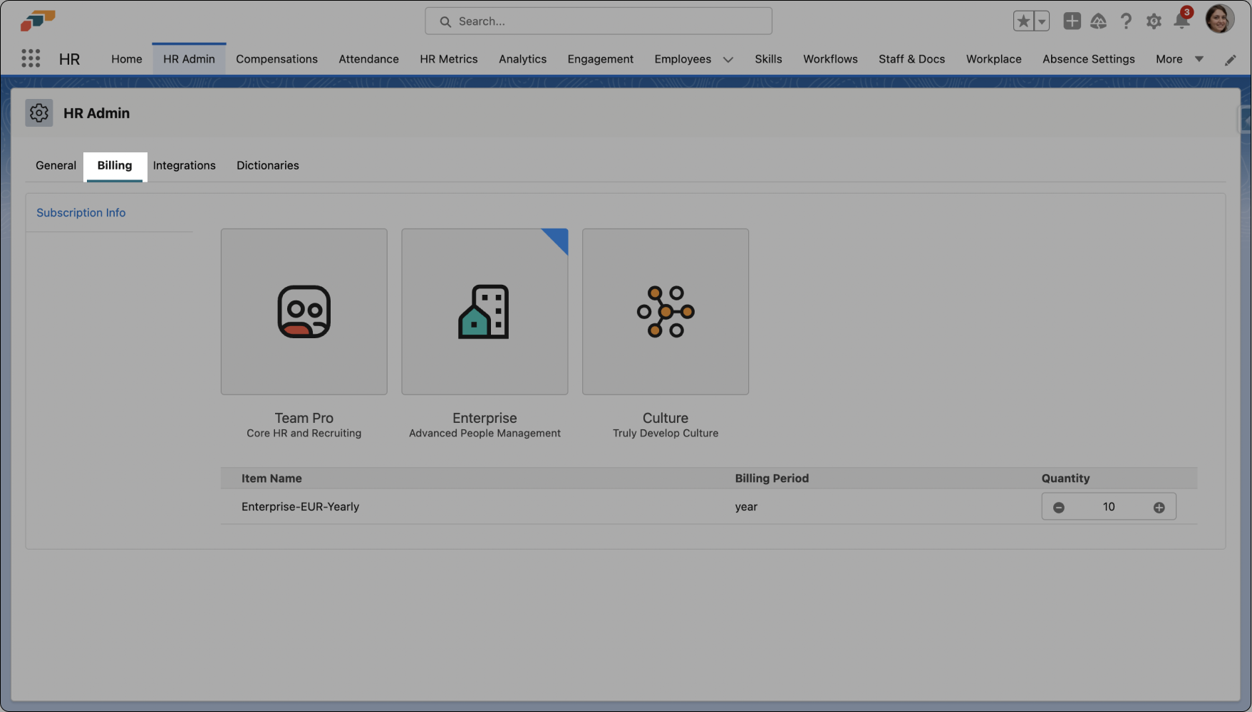 - Click on HR Admin in the Nav Bar and then open the Billing tab