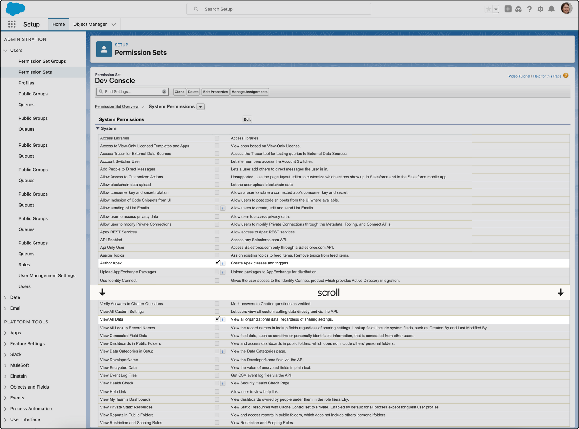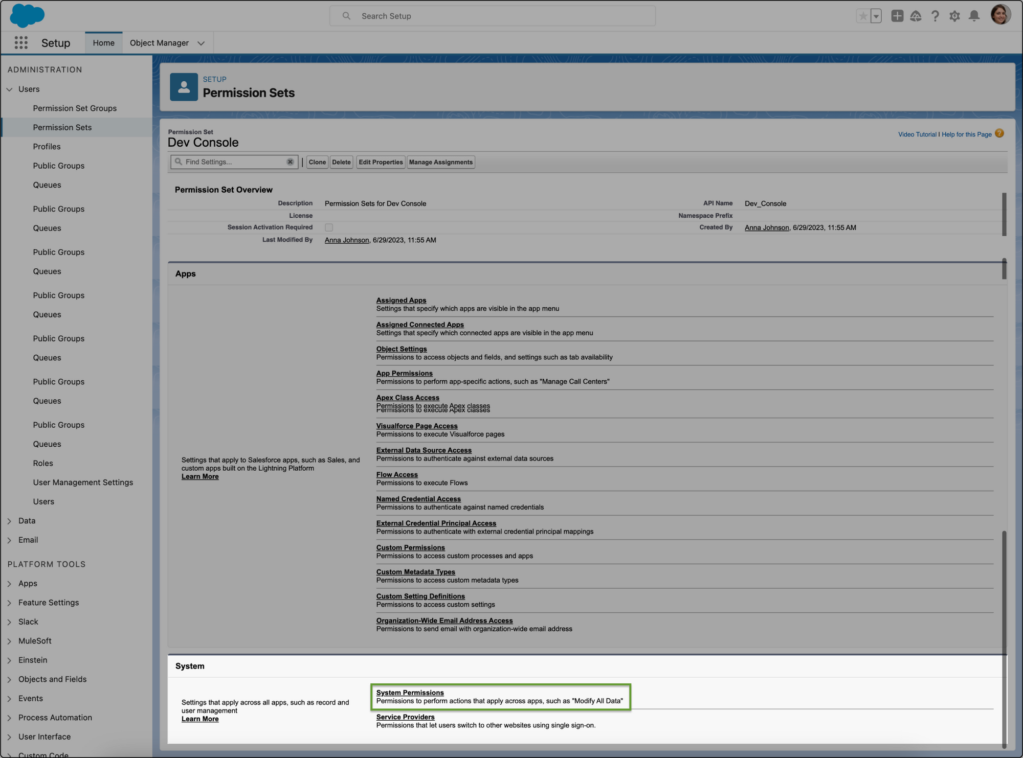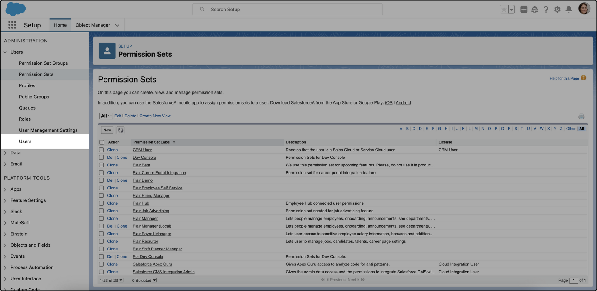 - The next step is to assign your new permissions to a specific user on the Users page within the Salesforce Setup portal