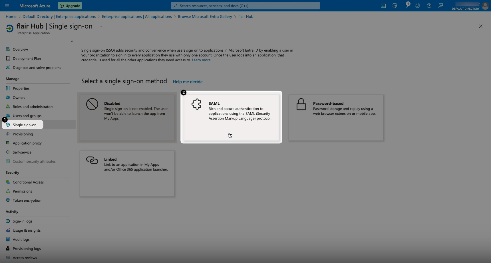 - Finally, to test your SAML login, go back to your SAML app in Microsoft Azure and open the Single Sign-On tab from the left menu. Scroll down to box 5 “Test single sign-on with flair Hub” and click Test. Then click Test Sign In.