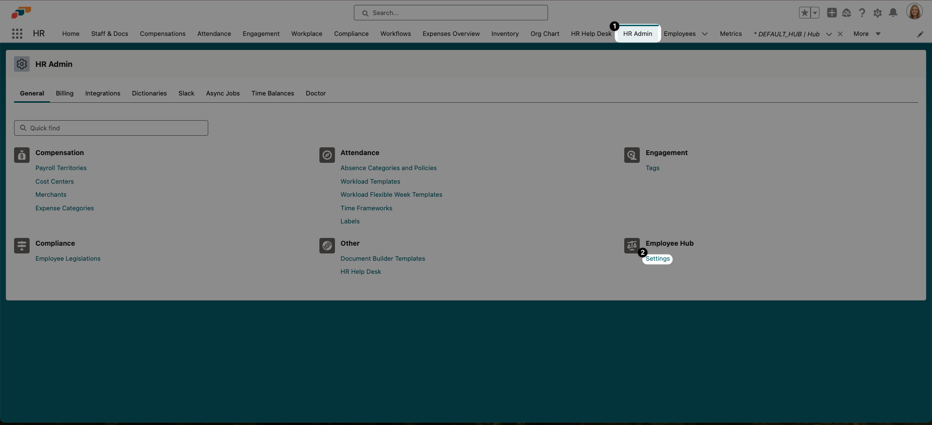 - Open the HR Admin page in the flair app on Salesforce. You can find HR Admin in your Navigation Bar or via the Salesforce App Launcher 𓃑.