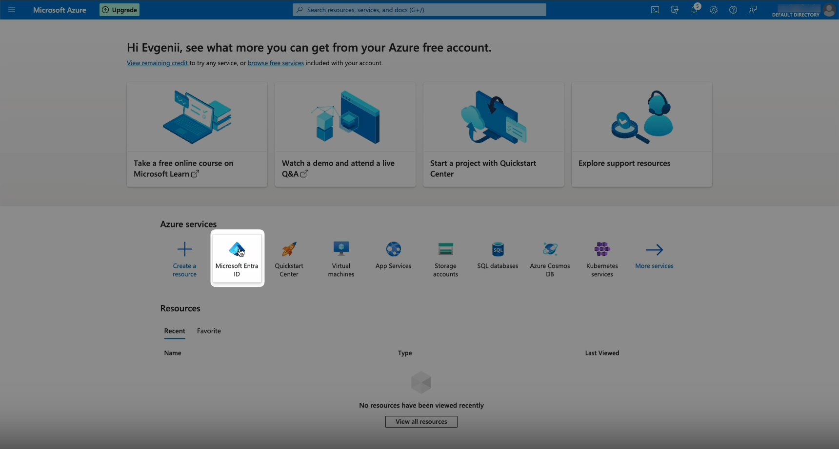 - Open Microsoft Azure and select Microsoft Entra ID from the Azure Services.