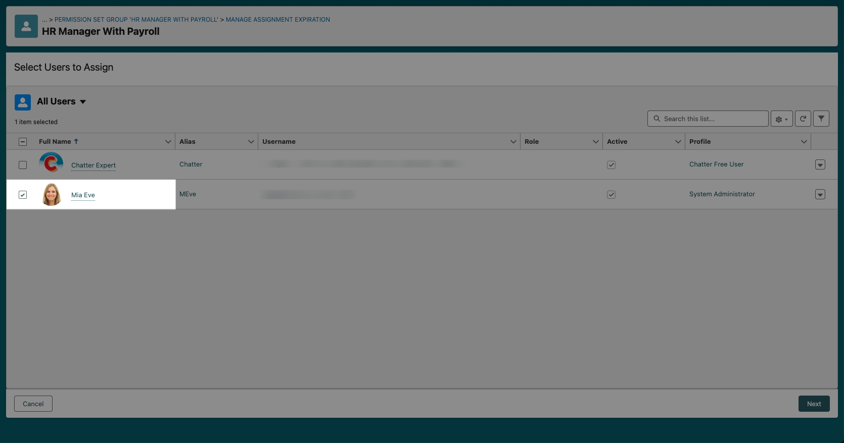 - Click Add Assignment and select the user you want to assign the permission set to. Then click Next. Choose whether the assignment should have an expiry date, and then click Assign.