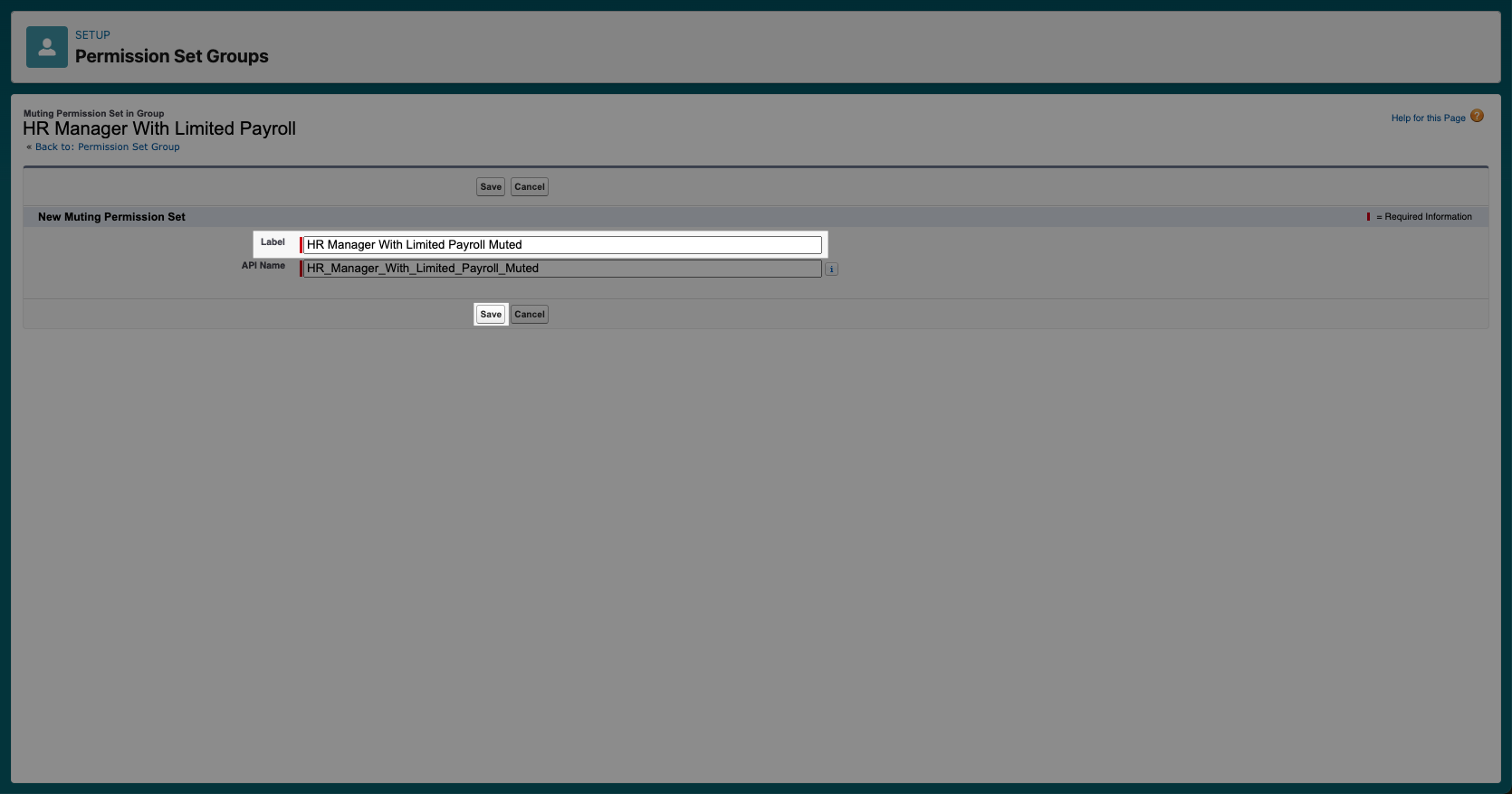 - Click New to create a new muting permission set. Give it a Label and click Save.